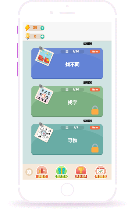 一款休闲娱乐的小游戏,简单上手、休闲有趣、有惊喜有挑战,通过点击屏幕来找到画中不同的地方。